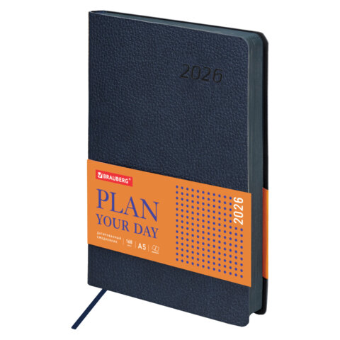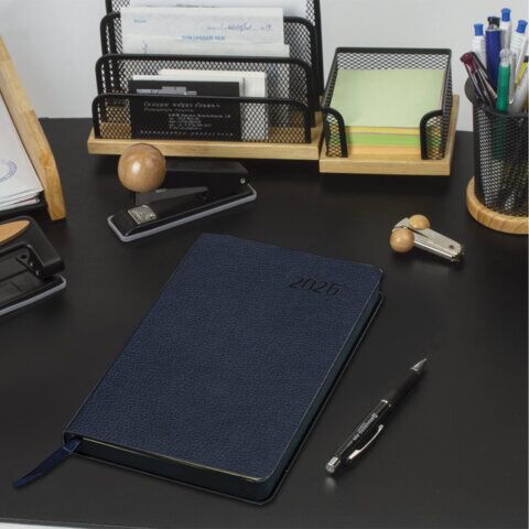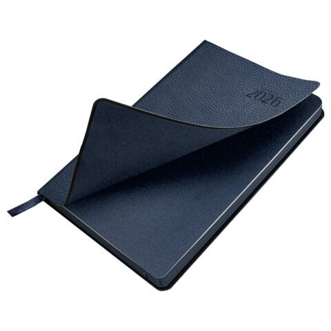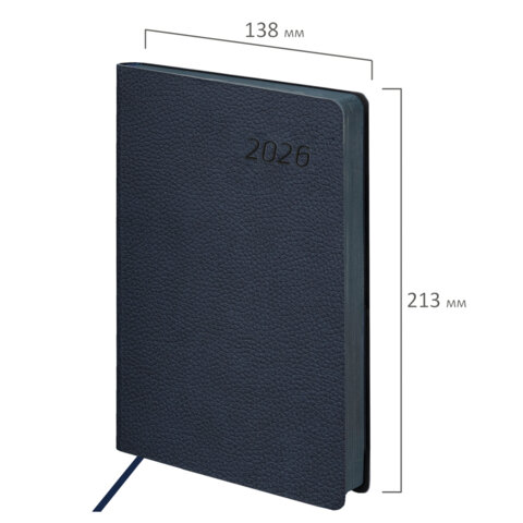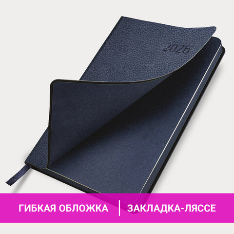 Ежедневник датированный 2026 А5 138x213 мм, BRAUBERG "Stylish", под кожу, гибкий, темно-синий, 169947