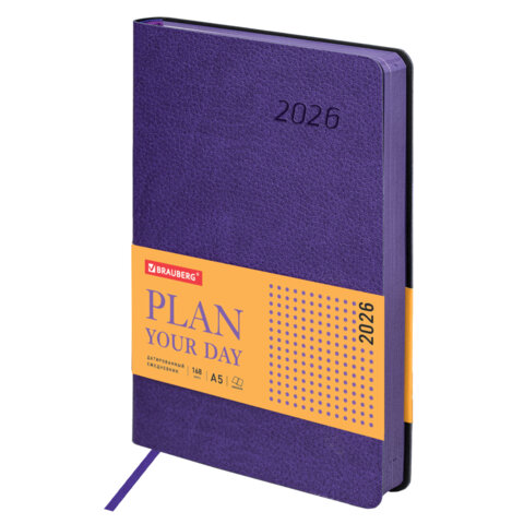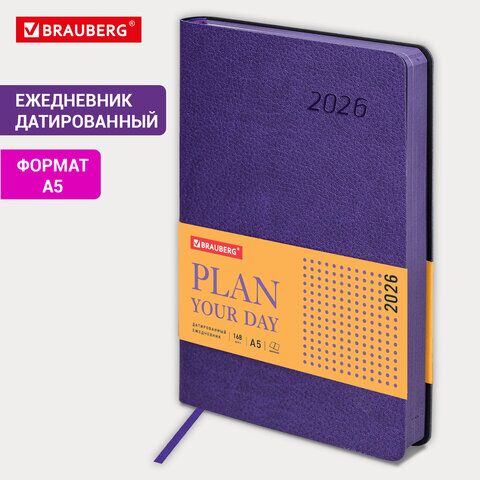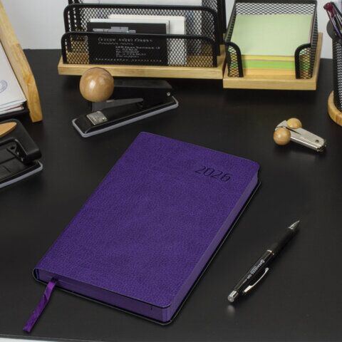 Ежедневник датированный 2026 А5 138x213 мм, BRAUBERG "Stylish", под кожу, гибкий, фиолетовый, 169951, купить в Грант СПБ