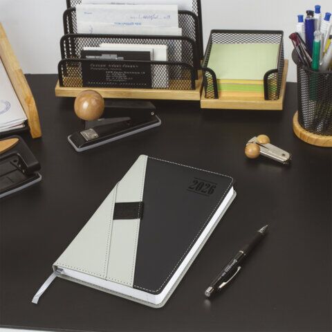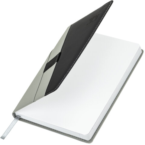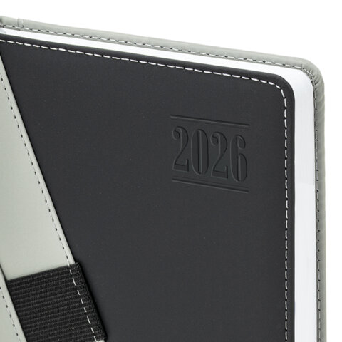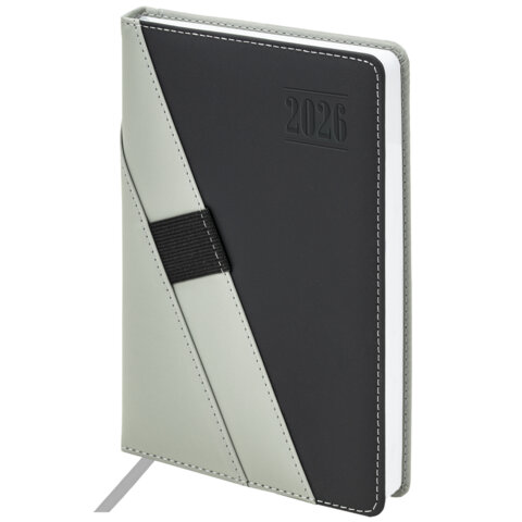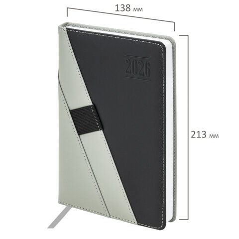 Ежедневник датированный 2026, А5, 138х213 мм, BRAUBERG "Swirl", под кожу, держатель для ручки, серый, 170293, купить в Грант СПБ