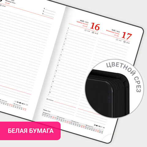 Датированный ежедневник BRAUBERG "Vista" выполнен в классическом стиле. Обложка из материала "под кожу" имеет дизайнерский принт и приятна на ощупь. Внутренний блок включает 168 листов белой бумаги плотностью 70 г/м2. Каждая страничка имеет перфорированны