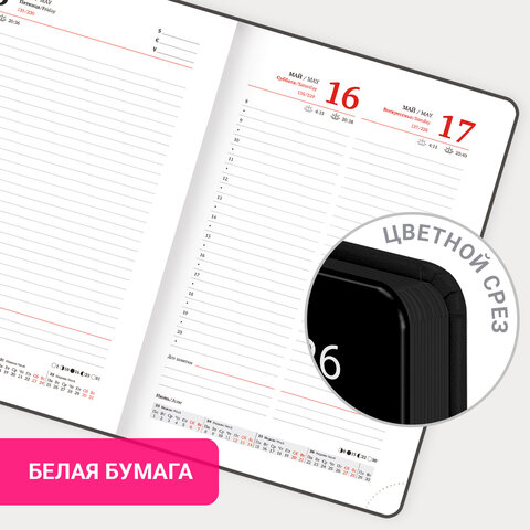 Датированный ежедневник BRAUBERG "Vista" выполнен в классическом стиле. Обложка из материала "под кожу" имеет дизайнерский принт и приятна на ощупь. Внутренний блок включает 168 листов белой бумаги плотностью 70 г/м2. Каждая страничка имеет перфорированны