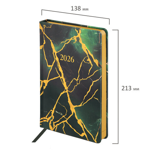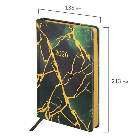 Ежедневник датированный 2026 А5 138x213 мм, BRAUBERG "Vista", под кожу, твердый, "Green marble", 170267