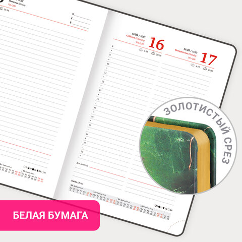 Ежедневник датированный 2026 А5 138x213 мм, BRAUBERG "Vista", под кожу, твердый, "Green marble", 170267, купить в Грант СПБ