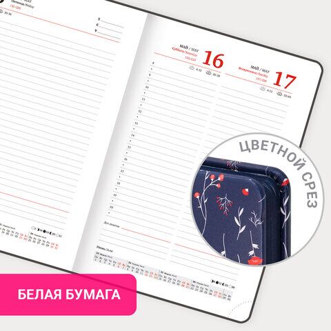 Датированный ежедневник BRAUBERG "Vista" выполнен в классическом стиле. Обложка из материала "под кожу" имеет дизайнерский принт и приятна на ощупь. Внутренний блок включает 168 листов белой бумаги плотностью 70 г/м2. Каждая страничка имеет перфорированны