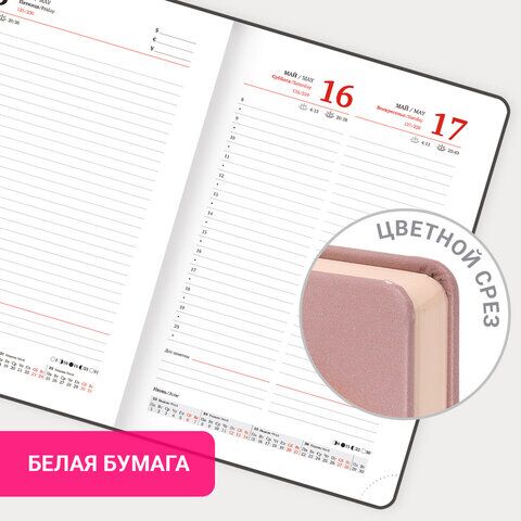 Ежедневник датированный 2026 А5 138x213 мм, BRAUBERG "Vista", под кожу твердый, "Tenderness", 170266, купить в Грант СПБ