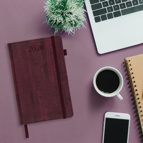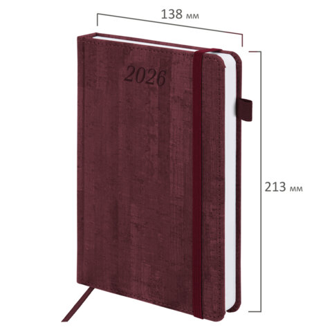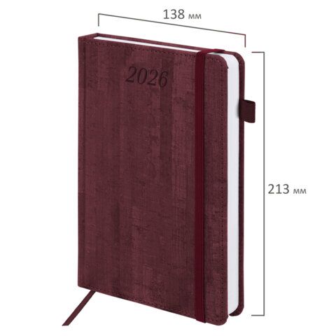 Ежедневник датированный 2026 А5 138x213 мм, BRAUBERG "Wood", под кожу, держатель для ручки, бордо, 169958, купить в Грант СПБ