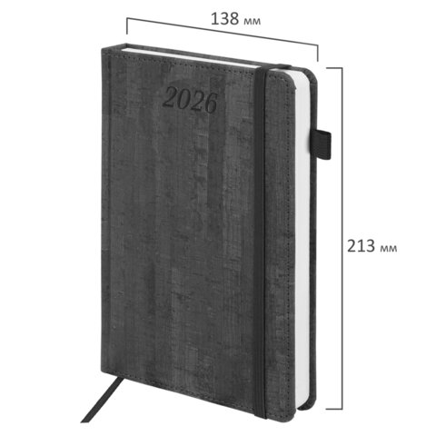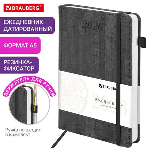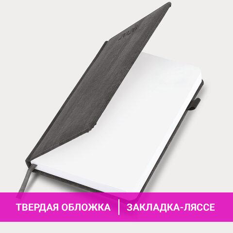Ежедневник датированный 2026 А5 138x213 мм, BRAUBERG "Wood", под кожу, держатель для ручки, серый, 169959, купить в Грант СПБ