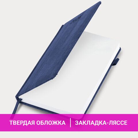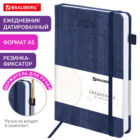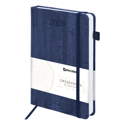 Ежедневник датированный 2026 А5 138x213 мм, BRAUBERG "Wood", под кожу, держатель для ручки, синий, 169957, купить в Грант СПБ