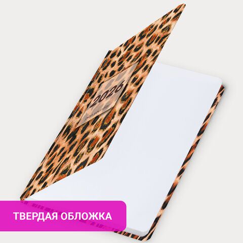 Датированный ежедневник с резинкой BRAUBERG "Леопард" подходит тем, кто предпочитает продуманное планирование спонтанным решениям. Внутренний блок состоит из 160 листов офсетной бумаги плотностью 60 г/м2. Обложка 7БЦ (твердый переплет с матовой пленкой) о