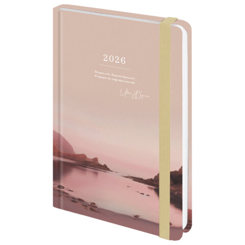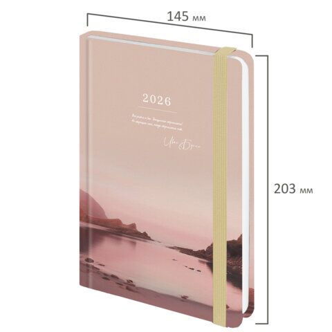 Датированный ежедневник с резинкой BRAUBERG "Безмятежность" подходит тем, кто предпочитает продуманное планирование спонтанным решениям. Внутренний блок состоит из 160 листов офсетной бумаги плотностью 60 г/м2. Обложка 7БЦ (твердый переплет с матовой плен