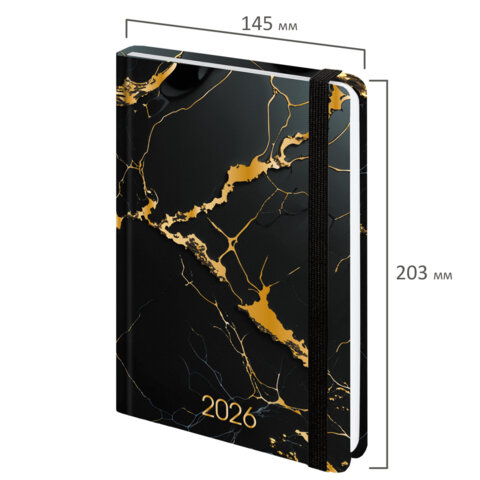Датированный ежедневник с резинкой BRAUBERG "Черный мрамор" подходит тем, кто предпочитает продуманное планирование спонтанным решениям. Внутренний блок состоит из 160 листов офсетной бумаги плотностью 60 г/м2. Обложка 7БЦ (твердый переплет с матовой плен