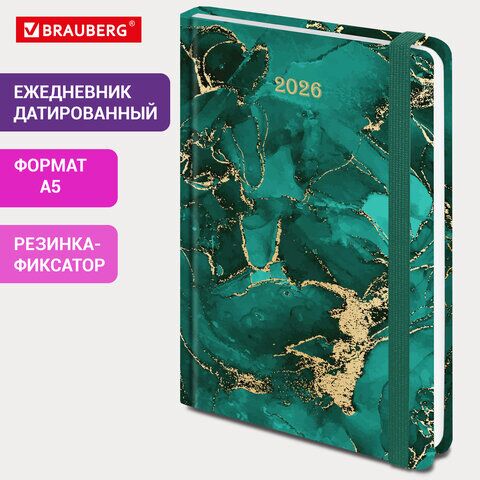 Датированный ежедневник с резинкой BRAUBERG "Мрамор" подходит тем, кто предпочитает продуманное планирование спонтанным решениям. Внутренний блок состоит из 160 листов офсетной бумаги плотностью 60 г/м2. Обложка 7БЦ (твердый переплет с матовой пленкой) об