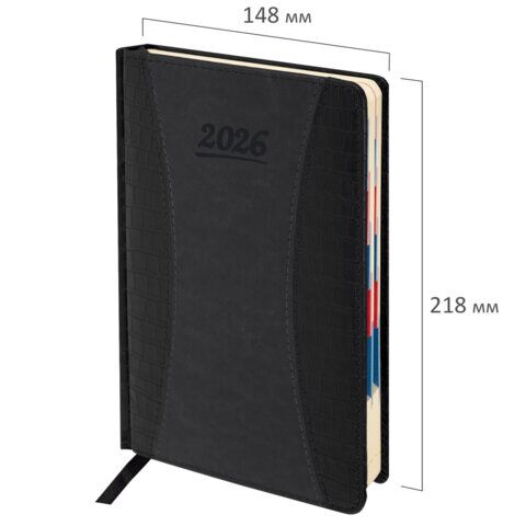 Ежедневник датированный 2026 А5 148х218 мм, GALANT "CombiContract", под кожу, черный, 170299