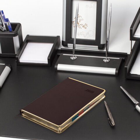 Датированный ежедневник серии "Infinity Gold" от GALANT – надежный спутник делового человека. Внутренний блок включает 168 листов тонированной бумаги цвета "слоновая кость" плотностью 70 г/м2. Каждая страничка имеет перфорированный угол. Благодаря стандар