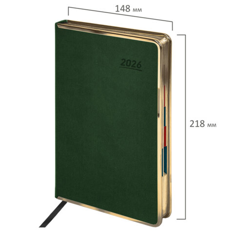 Ежедневник датированный 2026 А5 148х218 мм, GALANT "Infinity Gold", под кожу, темно-зеленый, 170314