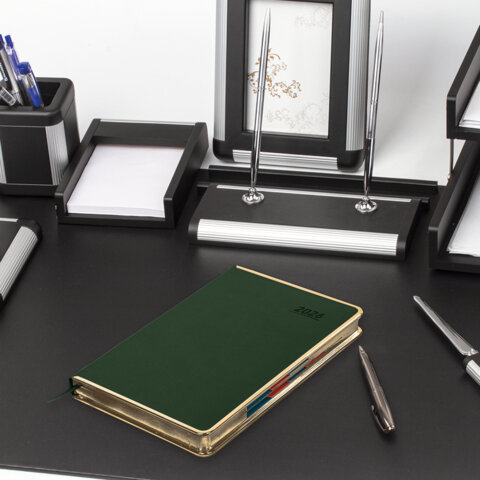 Датированный ежедневник серии "Infinity Gold" от GALANT – надежный спутник делового человека. Внутренний блок включает 168 листов тонированной бумаги цвета "слоновая кость" плотностью 70 г/м2. Каждая страничка имеет перфорированный угол. Благодаря стандар