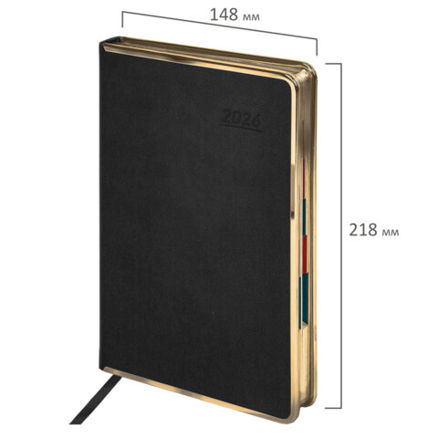 Ежедневник датированный 2026 А5 148х218 мм, GALANT "Infinity Gold", под кожу, черный, 170310, купить в Грант СПБ