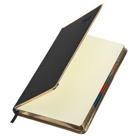 Датированный ежедневник серии "Infinity Gold" от GALANT – надежный спутник делового человека. Внутренний блок включает 168 листов тонированной бумаги цвета "слоновая кость" плотностью 70 г/м2. Каждая страничка имеет перфорированный угол. Благодаря стандар