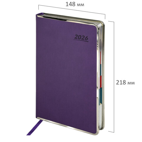 Ежедневник датированный 2026 А5 148х218мм GALANT "Infinity Silver", под кожу, фиолетовый, 170308