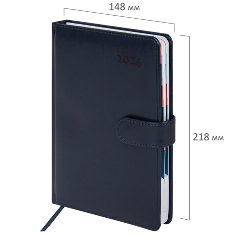 Ежедневник датированный 2026 А5 148х218 мм, GALANT "Ritter", под кожу, темно-синий, 170302