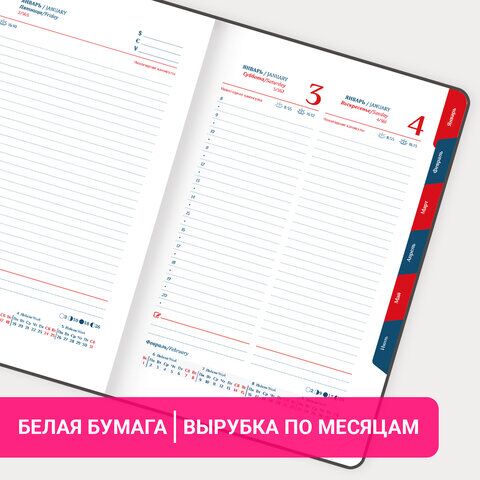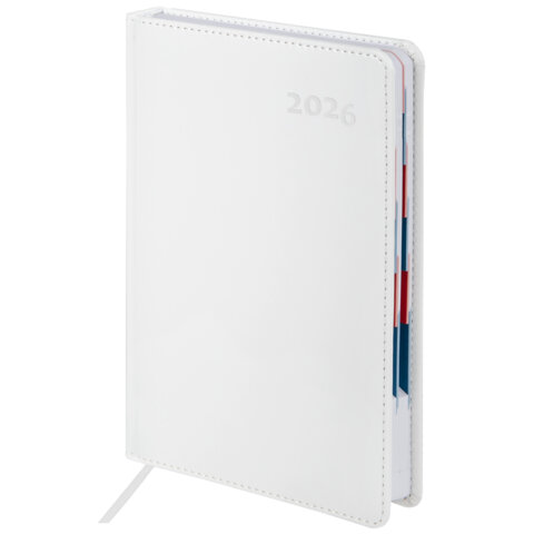 Датированный ежедневник серии "White" GALANT – надежный спутник делового человека. Внутренний блок включает 168 листов белой бумаги плотностью 70 г/м2. Каждая страничка имеет перфорированный угол. Благодаря стандартному формату А5 (148х218 мм) ежедневник