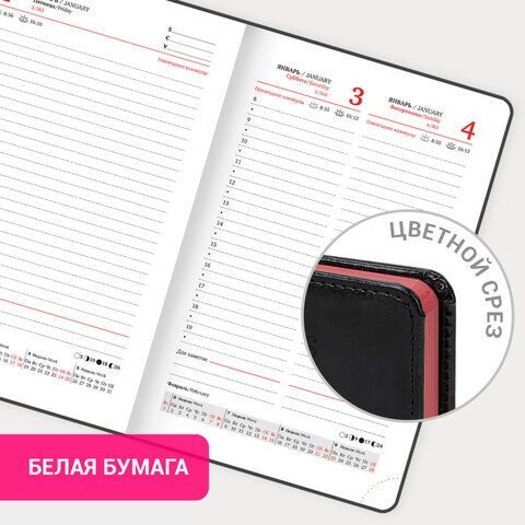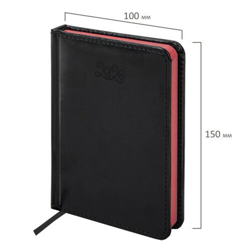 Ежедневник датированный 2026, МАЛЫЙ ФОРМАТ 100х150 мм, А6, BRAUBERG "Rainbow", под кожу, черный, 170084, купить в Грант СПБ