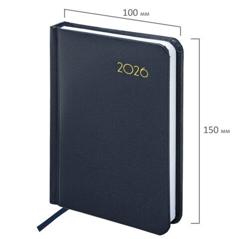 Ежедневник датированный 2026, МАЛЫЙ ФОРМАТ 100х150 мм, А6, BRAUBERG "Select", балакрон, темно-синий, 170086, купить в Грант СПБ