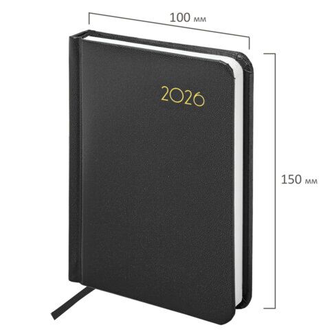 Ежедневник датированный 2026, МАЛЫЙ ФОРМАТ 100х150 мм, А6, BRAUBERG "Select", балакрон, черный, 170087, купить в Грант СПБ