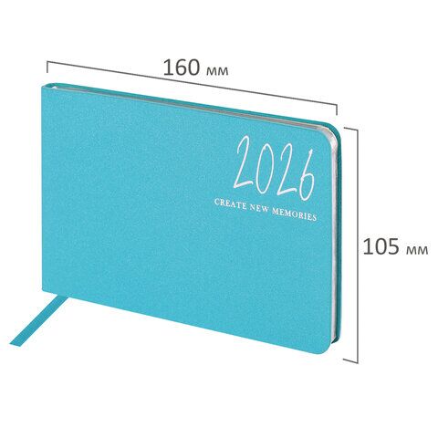 Еженедельник датированный 2026 МАЛЫЙ ФОРМАТ 105х160 мм, А6, BRAUBERG "Blaze", фольга, голубой, 170044