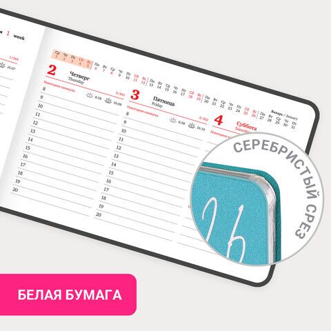 Датированный еженедельник BRAUBERG "Blaze" выполнен в оригинальном дизайне. Гибкая обложка стилизована под фактурную кожу с блеском. Имеет книжную ориентацию. Внутренний блок включает 64 листа белой бумаги плотностью 70 г/м2. Благодаря малому формату А6 (