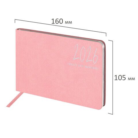 Еженедельник датированный 2026 МАЛЫЙ ФОРМАТ 105х160 мм, А6, BRAUBERG "Blaze", фольга, розовый, 170045