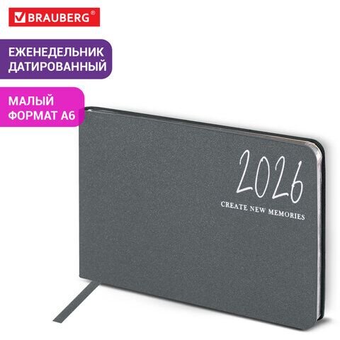 Еженедельник датированный 2026 МАЛЫЙ ФОРМАТ 105х160 мм, А6, BRAUBERG "Blaze", фольга, серый, 170048, купить в Грант СПБ