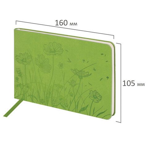 Еженедельник датированный 2026 МАЛЫЙ ФОРМАТ 105х160 мм, А6, BRAUBERG "Imprint", тиснение, зеленый, 170042, купить в Грант СПБ