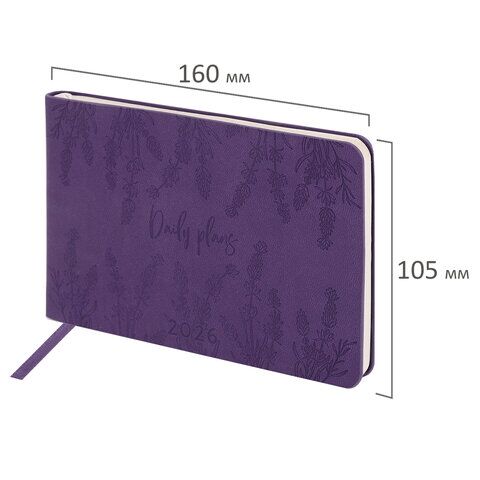Еженедельник датированный 2026 МАЛЫЙ ФОРМАТ 105х160 мм, А6, BRAUBERG "Imprint", тиснение, фиолетовый, 170040, купить в Грант СПБ