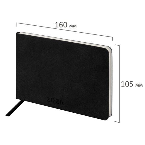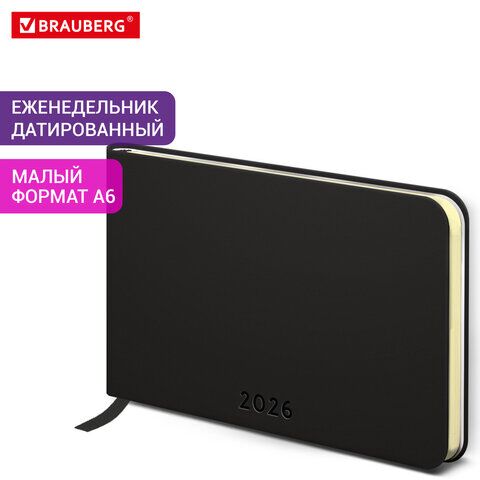 Еженедельник датированный 2026 МАЛЫЙ ФОРМАТ 105х160 мм, А6, BRAUBERG "Unique", черный, 170038, купить в Грант СПБ