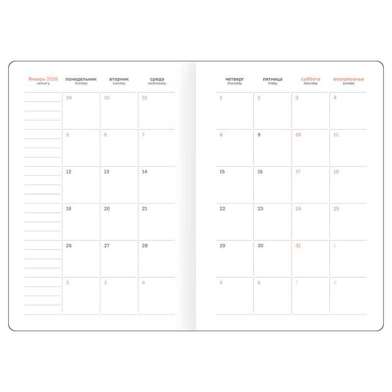 Стильный датированный ежедневник на 2026 год BG "Contrast" формата А5 отличается ярким цветным контрастным срезом и твёрдой обложкой из высококачественной экокожи. Изделие представлено в размере 145*205 мм. Внутренний блок состоит из 176 листов высококаче