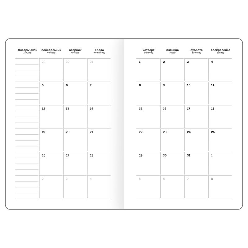 Ежедневник датированный на 2026 год BG серии "Monochrome" - ваше личное пространство для вдохновения и креативности, где каждая страница помогает делать шаги к успеху с лёгкостью и стилем. Ничего лишнего — только четкие линии и утонченная элегантность, ко