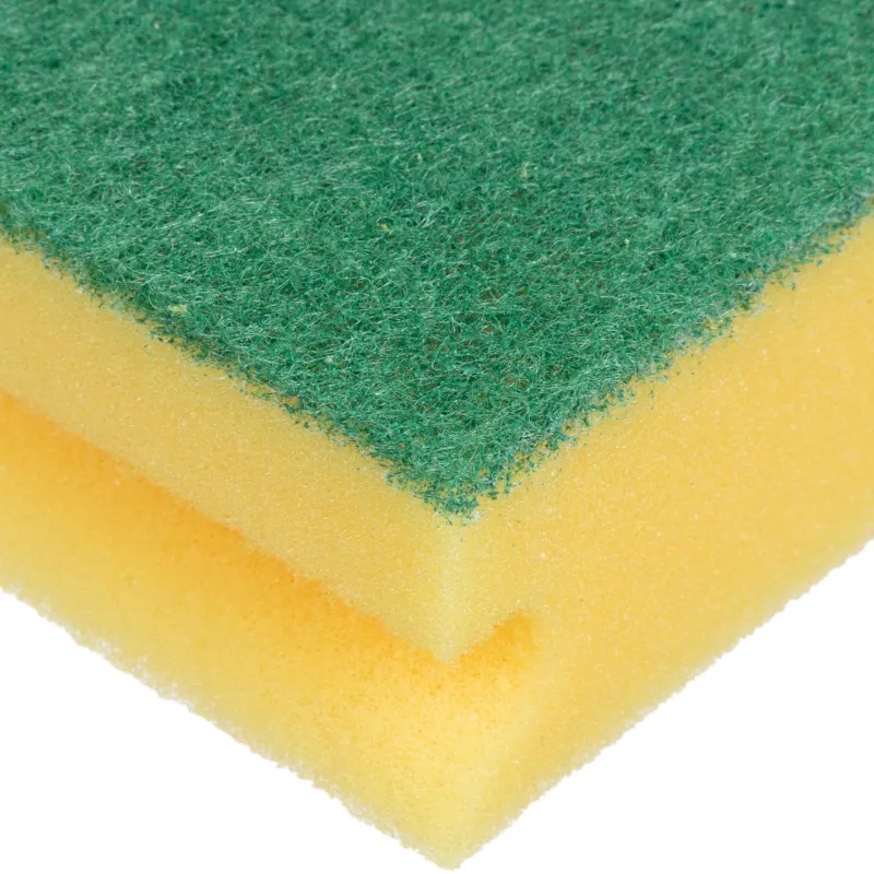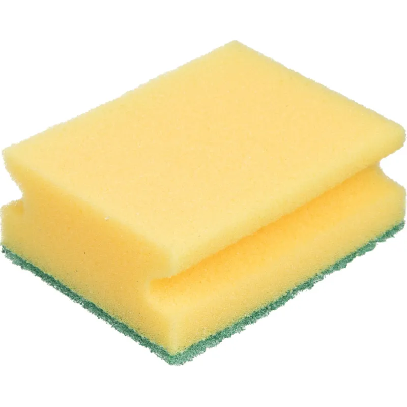 Мелкопористый поролон отлично держит пену, не крошится и не деформируется. Абразивная фибра высокого качества прекрасно очищает. Высокая прочность склейки слоев для длительного использования. Преимущества: Удобная и качественная вырубка для захвата защищает маникюр. Яркая, информативная упаковка. Размер губки 7?9х5 см. 2 штуки в упаковке.