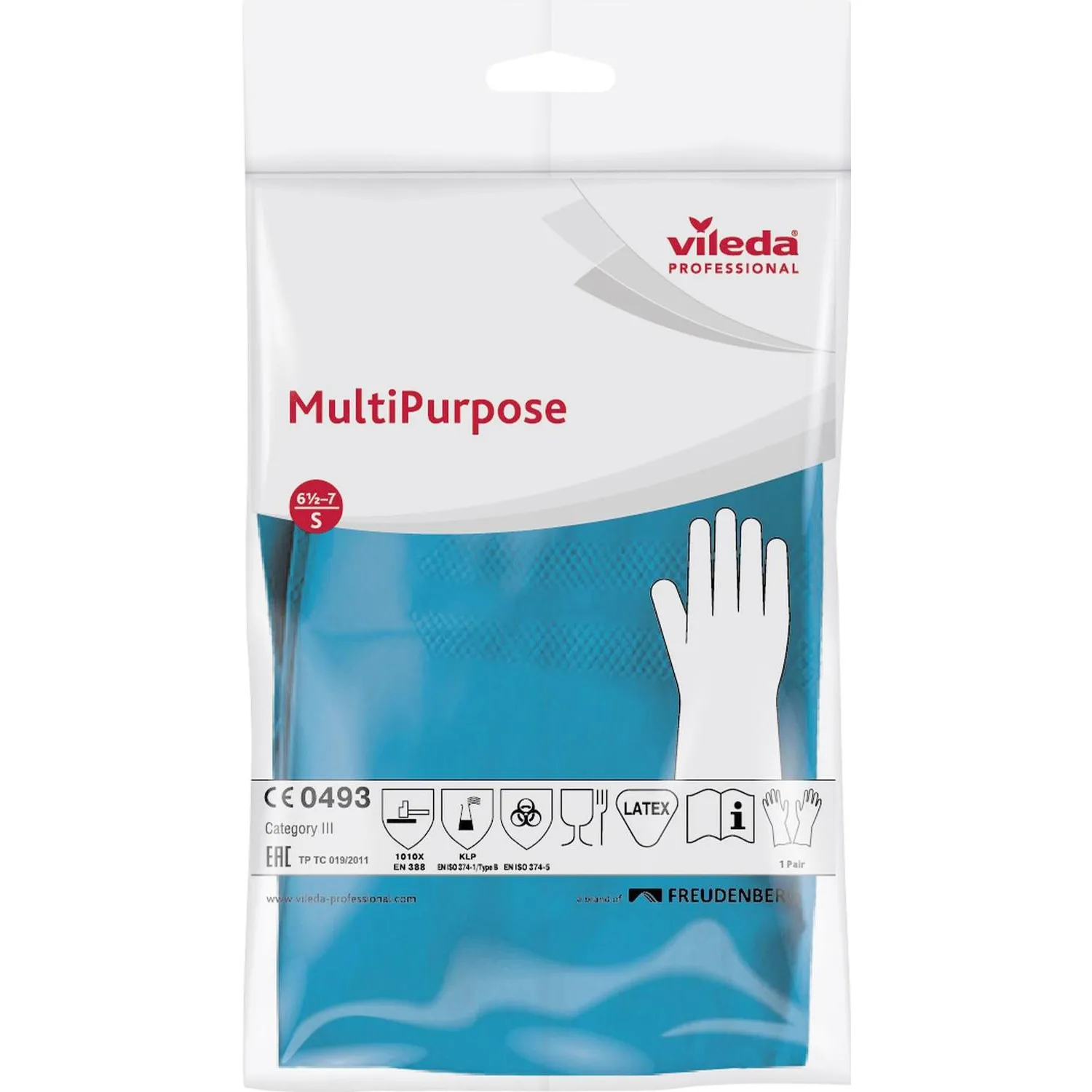 Перчатки латексные Vileda Professional многоцелевые повышенная прочность синие (размер 8.5-9, L, 100754).