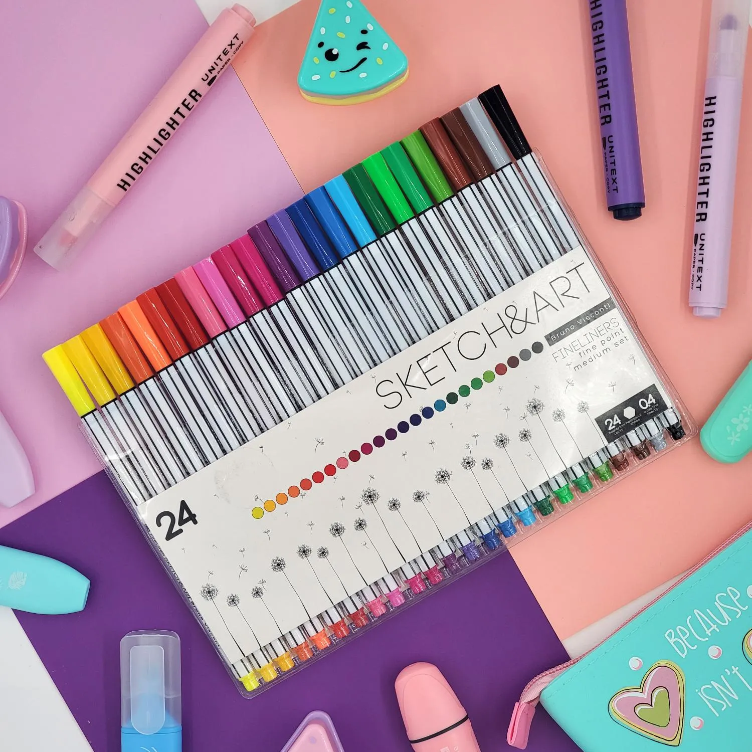 Набор линеров "Sketch&Art" для профессионального и любительского скетчинга с богатой цветовой палитрой из 24 различных оттенков. Их легкое скольжение по поверхности бумаги обеспечивает наконечник из высококачественного синтетического волокна, устойчивого к истиранию. Металлический обжим наконечника дает возможность работать с линейками и трафаретами. Чернила на водной основе не имеют запаха, легко смываются с рук и отстирываются от ткани. Мягкая, прозрачная упаковка с европодвесом обеспечивает удобное хранение и транспортировку линеров. Набор линеров "Sketch&Art" - отличная идея для подарка всем тем, кто делает первые шаги в скетчинге, а также для всех тех, кто уже в этом преуспел!