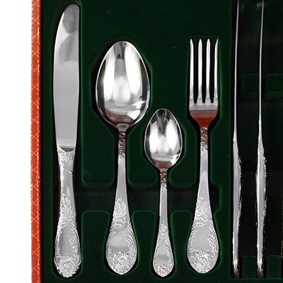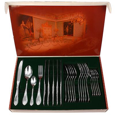 Набор столовых приборов из нержавеющей стали "Императорский" 24 предмета: вилка 20см - 6шт, ложка 20см - 6шт, ложка чайная 14,5см - 6шт, нож 24см - 6шт, подарочная упаковка (Россия)