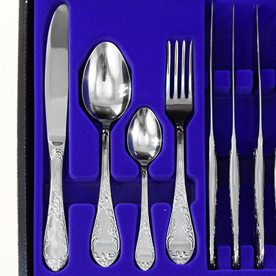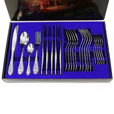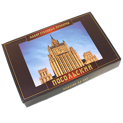 Набор столовых приборов из нержавеющей стали "Посольский" 24 предмета: вилка 20см - 6шт, ложка 20см - 6шт, ложка чайная 14,5см - 6шт, нож 24см - 6шт, подарочная упаковка (Россия)