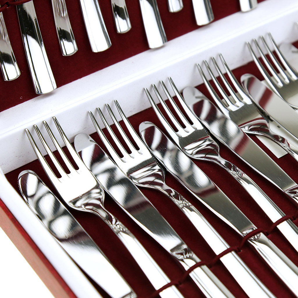 Набор столовых приборов "Торжество" 24 предметов: вилка столовая - 6шт, ложка столовая - 6шт, нож столовый - 6шт, ложка чайная - 6шт, нержавеющая сталь 18/10, 18/0, ГОСТ Р 51687-2000, 2мм, цветная коробка (Россия), 171998,  купить в Грант СПБ