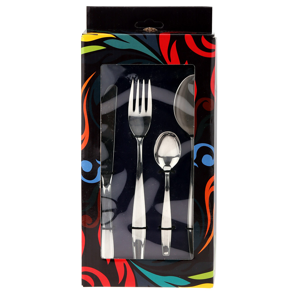 Набор столовых приборов "Этикет" 24 предметов: вилка столовая - 6шт, ложка столовая - 6шт, нож столовый - 6шт, ложка чайная - 6шт, нержавеющая сталь 18/10, 18/0, ГОСТ Р 51687-2000, 2,5мм, картонная коробка "витрина" (Россия), 172000