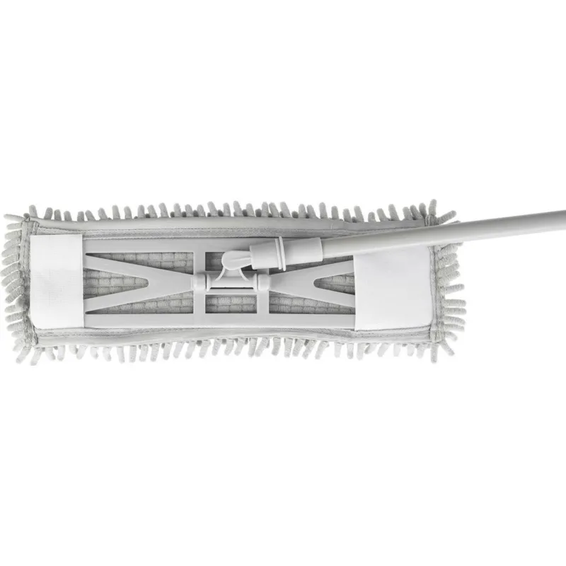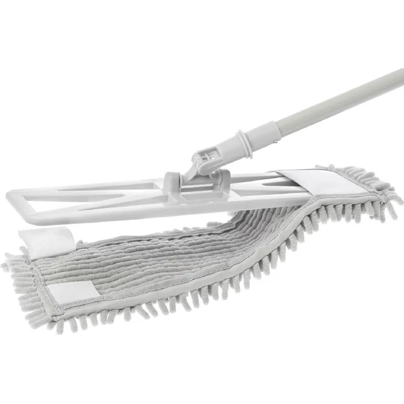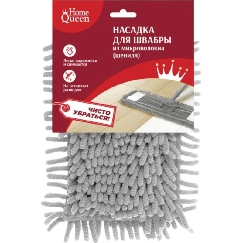 Насадка МОП микрофибра плоская Home Queen 40x12 см (для арт. 569191) Насадка для швабры из микрофибры (ткань шенилл) походит для всех видов напольных покрытий. Отличается высокой износостойкостью. Не царапает поверхность, отлично впитывает влагу, притягивает жирные и маслянистые загрязнения. Насадка крепится к швабре посредством двух боковых карманов (один на липучке). Размер: 40x12 см Вес: нетто - 80 г, брутто - 85 г. Материал насадки: микрофибра.