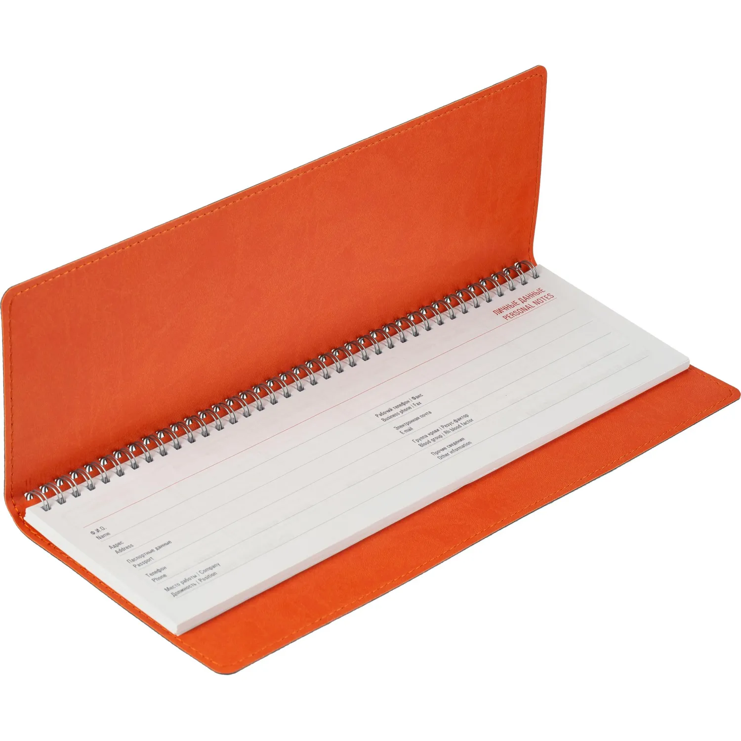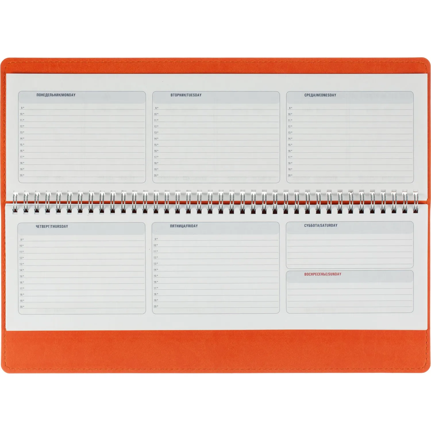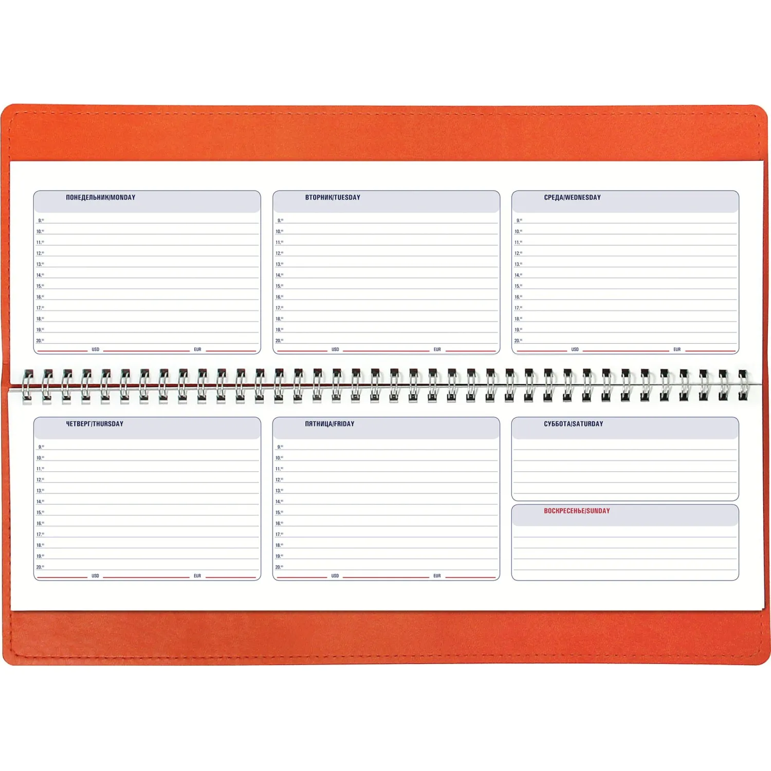 Планинг недатированный Attache Bizon. Размер 340x130 мм. Планинг со строгим дизайном, на скрытой пружине. Обложка: мягкая из искусственной кожи синего цвета с декоративной оранжевой прострочкой по периметру. Углы обложки скруглены. Блок: недатированный, 57 листов (114 страниц), печать в 2+2 краски, цвет бумаги - 100% белизны, 70 г/кв.м. (линейка). Информационный блок содержит: личные данные, планирование, наиболее важные события года, блок для заметок.