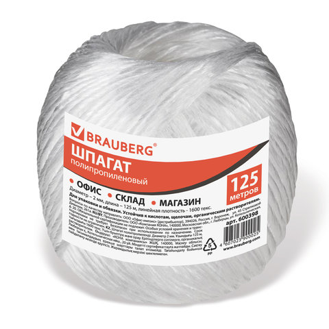 Полипропиленовый шпагат BRAUBERG отлично подходит для хозяйственных и бытовых нужд в домашнем и дачном хозяйстве. Активно применяется в обвязке, упаковке товаров и посылок, подвязки растений и деревьев, плетении, декорировании.