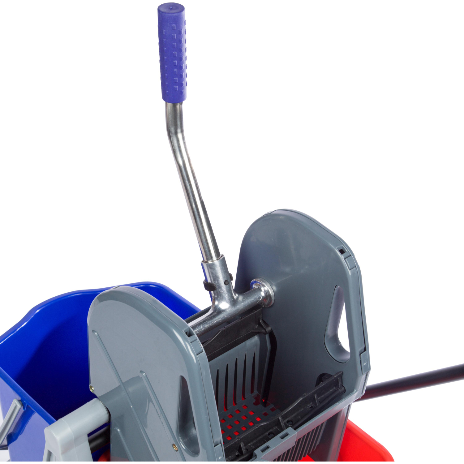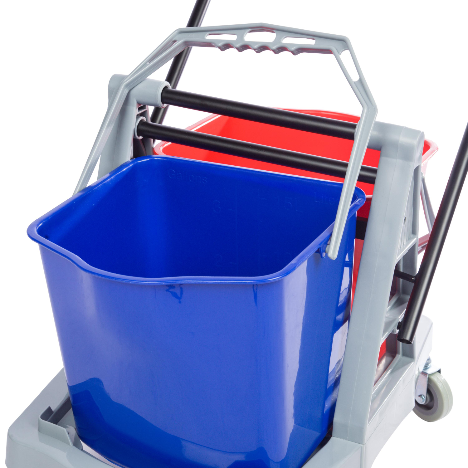 Тележка для влажной уборки — хороший вариант для решения клининговых задач. Применяется в торговых и бизнес центрах, других помещениях с большой площадью для уборки. В комплекте: пластиковый каркас на четырех колесах диаметром 76 мм, два пластиковых ведра по 17 л, отжим для МОПов. База тележки изготовлена из надежного ударопрочного пластика. Габаритные размеры тележки: 71х42х93 см. Вес: 6.5 кг. Размер ведра 62х41х73 см.