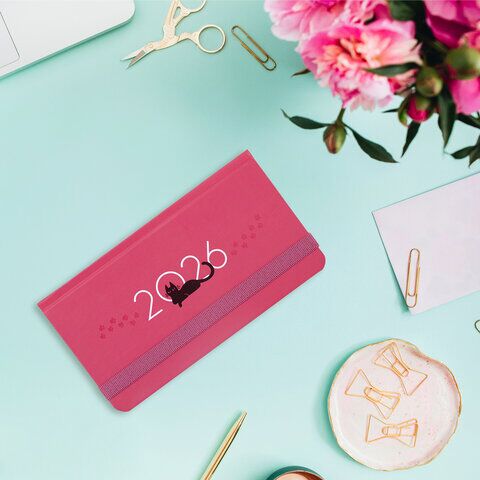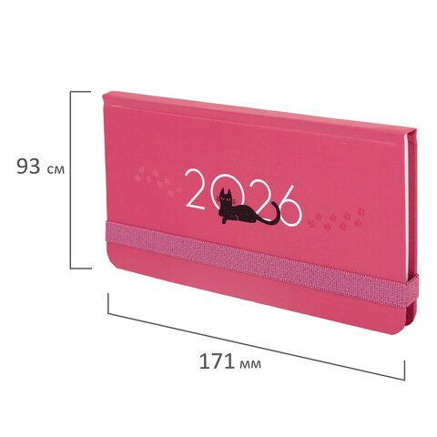 Датированный еженедельник с резинкой BRAUBERG "Кот" создан для тех, кто предпочитает продуманное планирование спонтанным решениям. Внутренний блок содержит 64 листа офсетной бумаги белого цвета плотностью 60 г/м2. Благодаря малому формату (171х93 мм) ежен