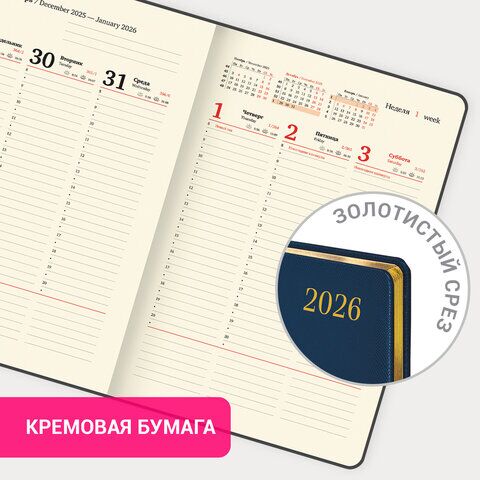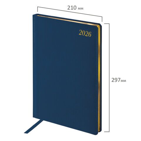 Еженедельник датированный 2026, БОЛЬШОЙ ФОРМАТ 210х297 мм, А4, BRAUBERG "Iguana", под кожу, синий, 169987